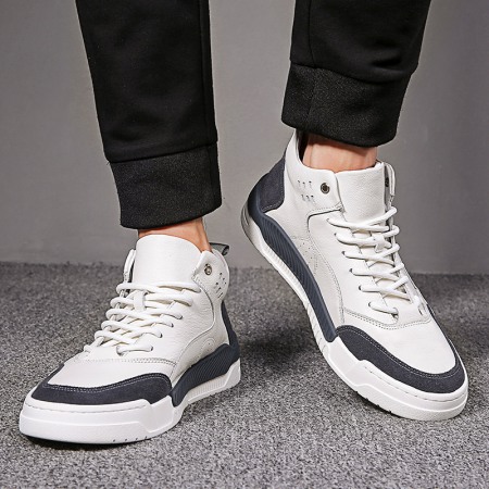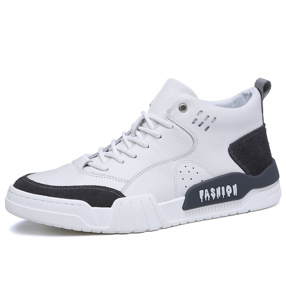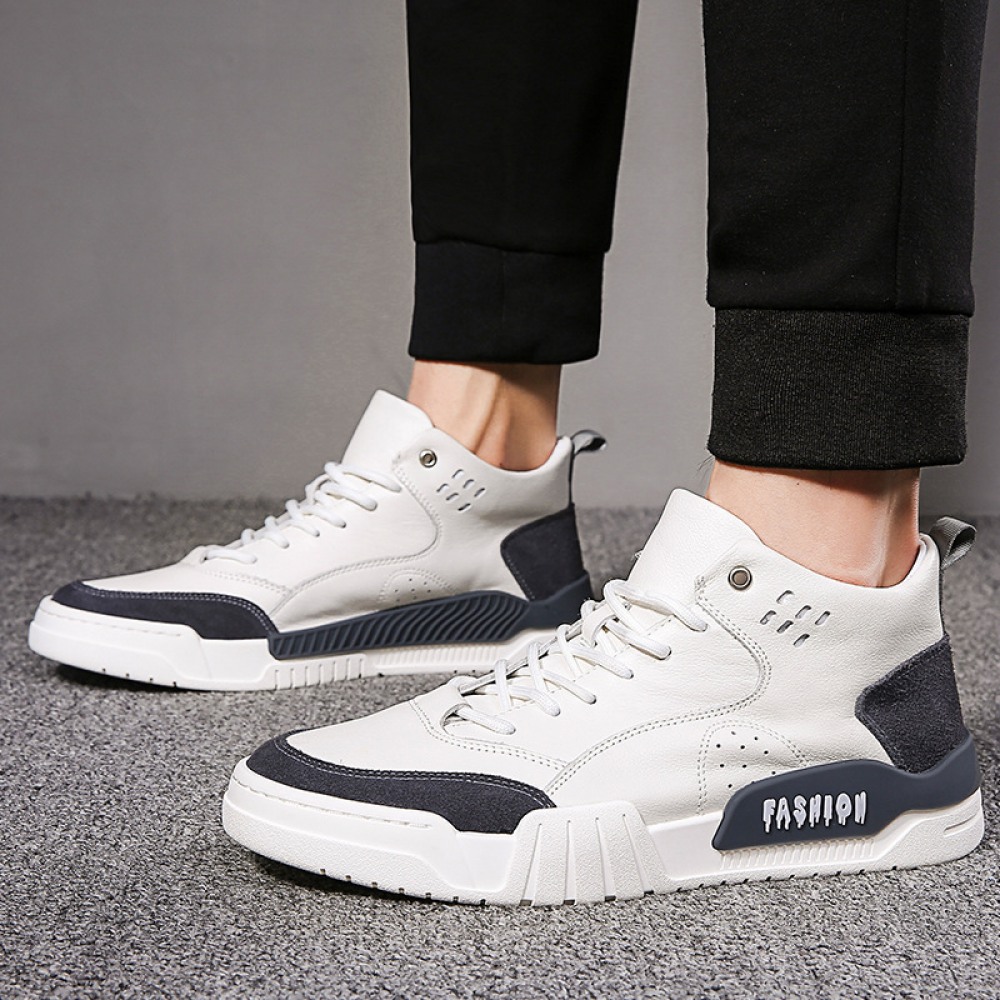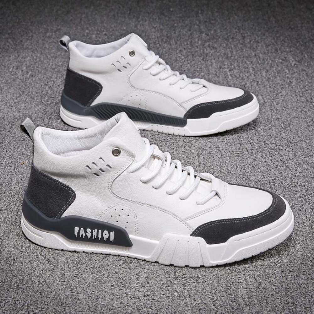 White Shoes Men's Autumn New Flat Bottom Shoes Men's Leather High Top Mens Casual Shoes