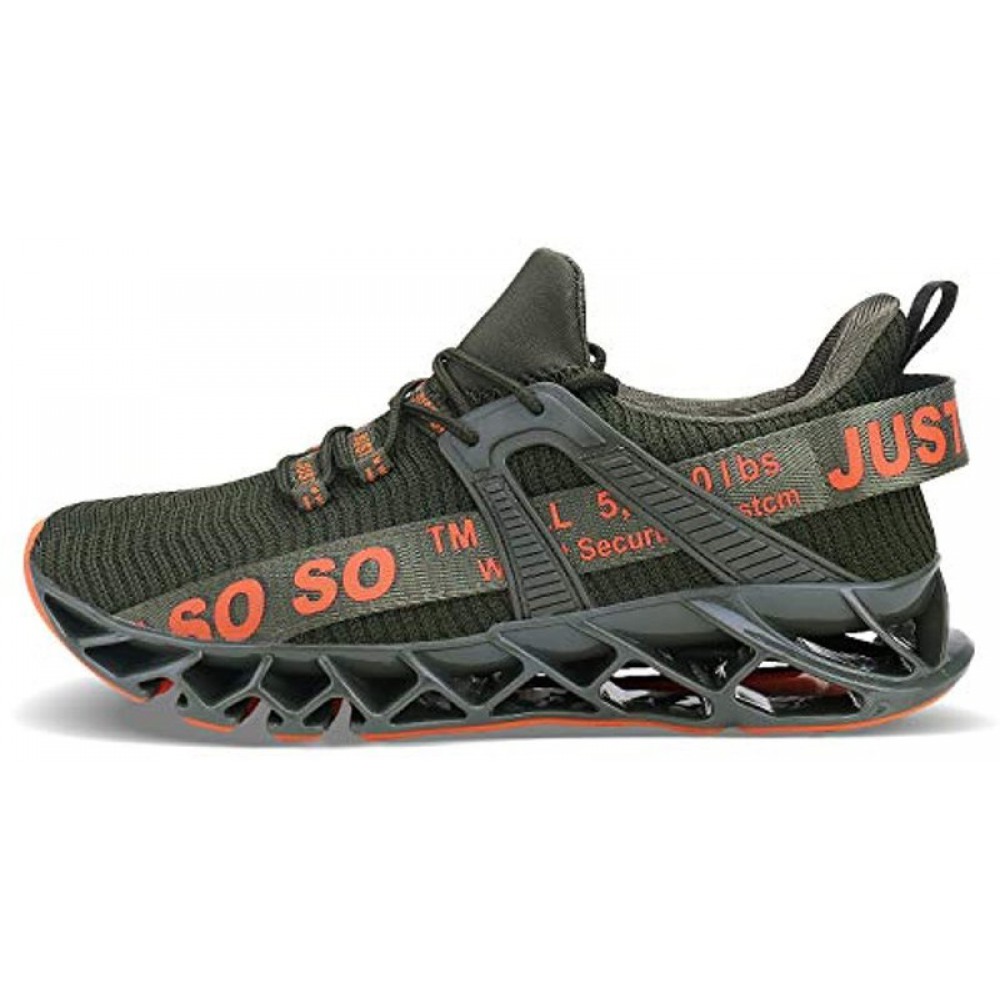 Mens Runing Shoes Walking Non Slip Blade Type Sneakers Army Green
