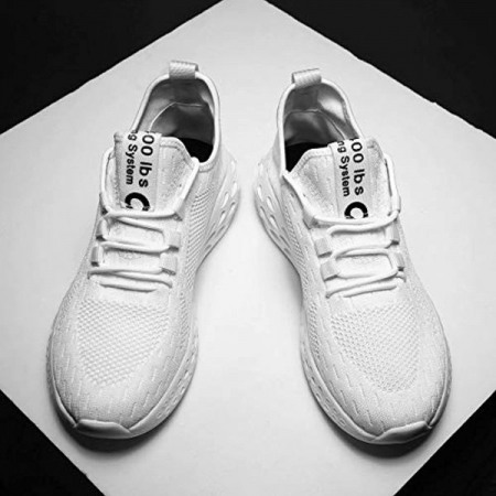 Mens Running Shoes Slip On Walking Shoes Fashion Breathable Sneakers Mesh Soft Sole Casual Athletic Lightweight White
